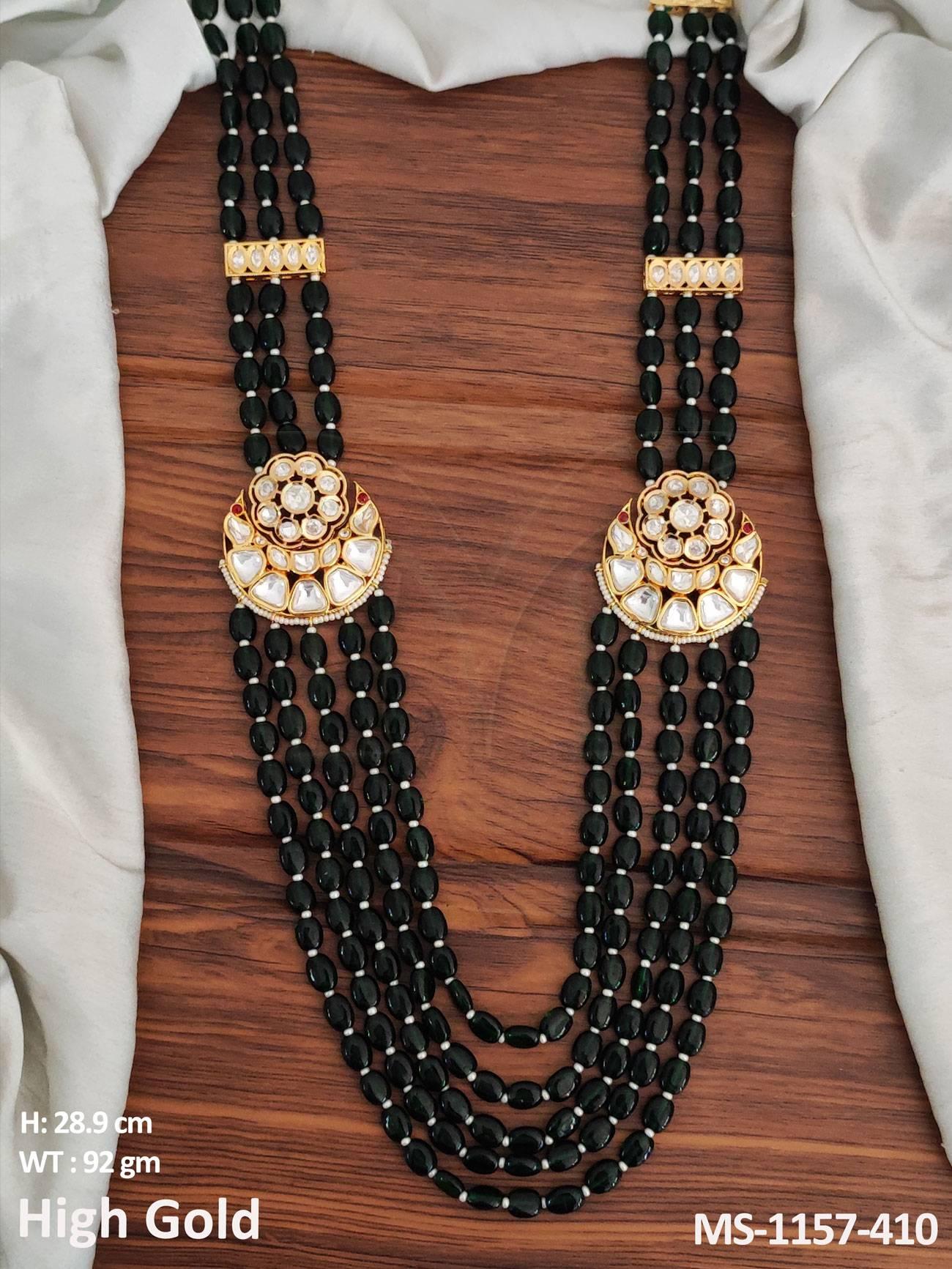 - Kundan Jewellery High Gold Polish Long Beaded Sherwani Style Mala