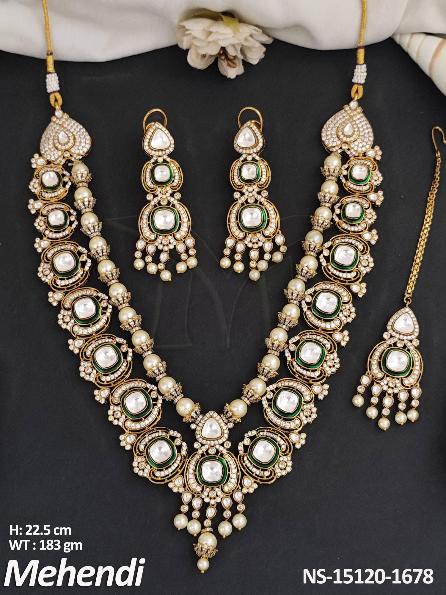 - Kundan Jewellery Mehendi Polish Cluster Pearl Full Stone Neckalce Set
