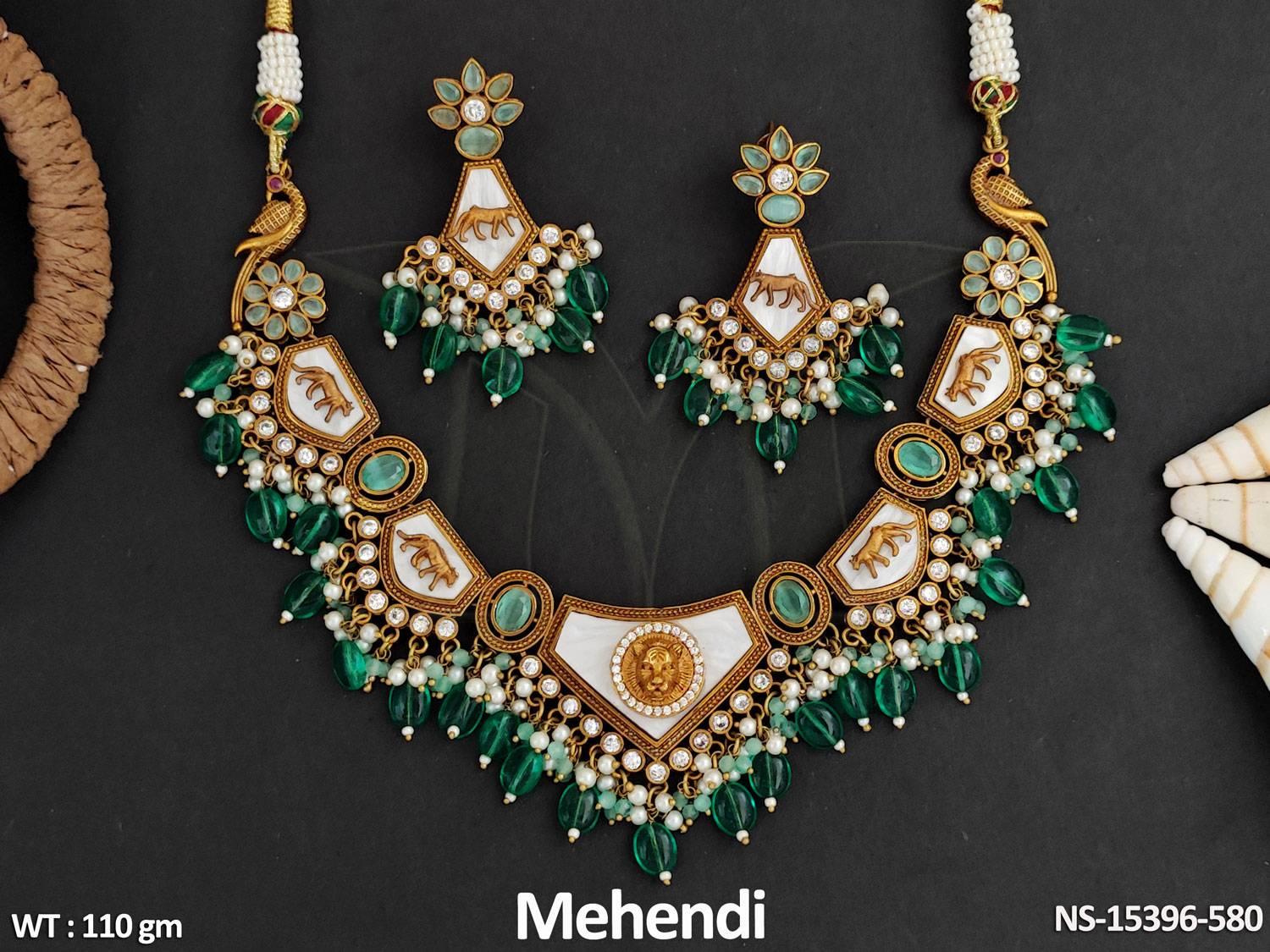 Kundan Jewellery Mehendi Polish Full Stone Party Wear Heavy Necklace Set