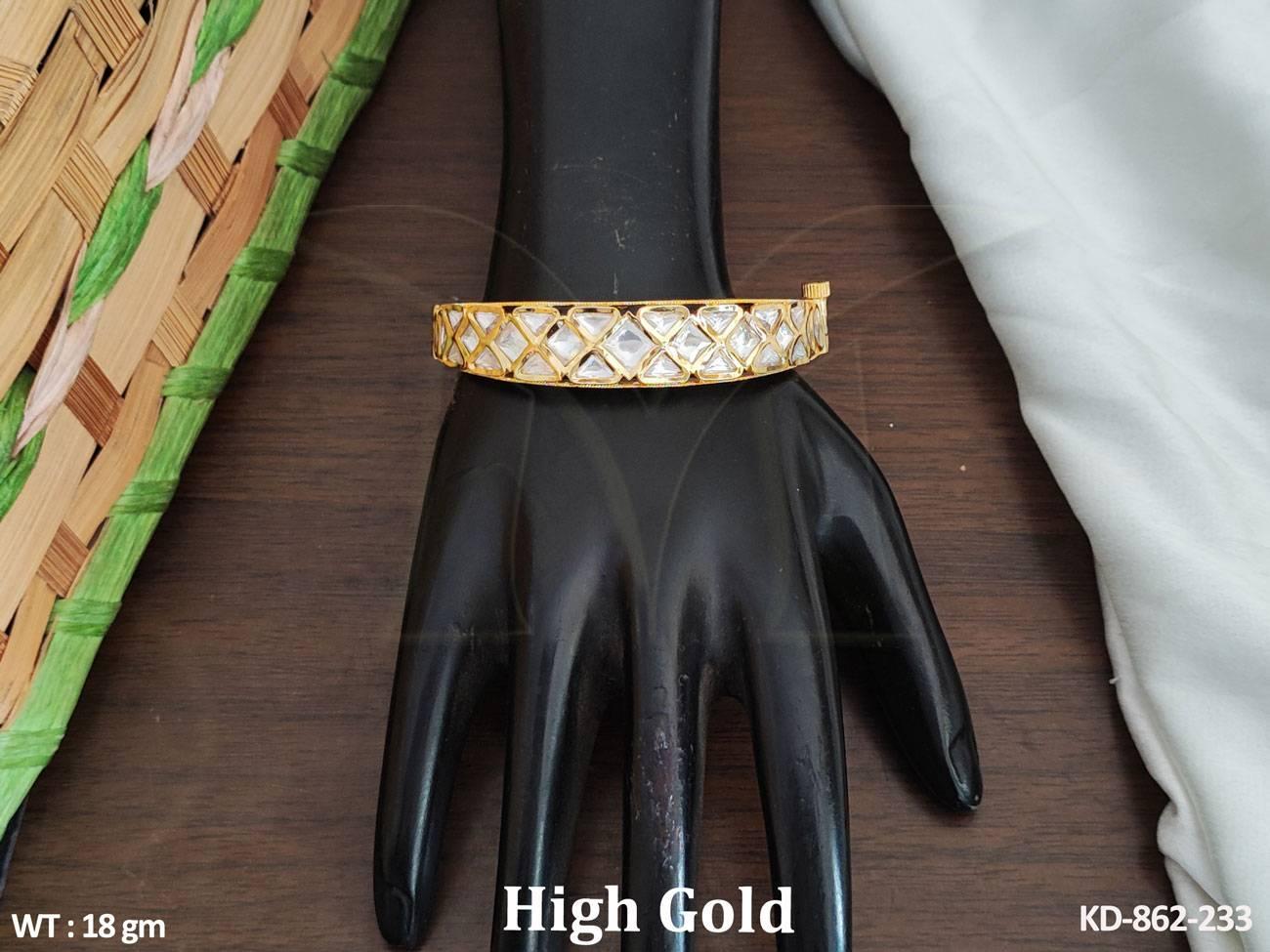 - Kundan Jewelry High Gold Polish Party Wear Beautiful Kundan Openable Kada