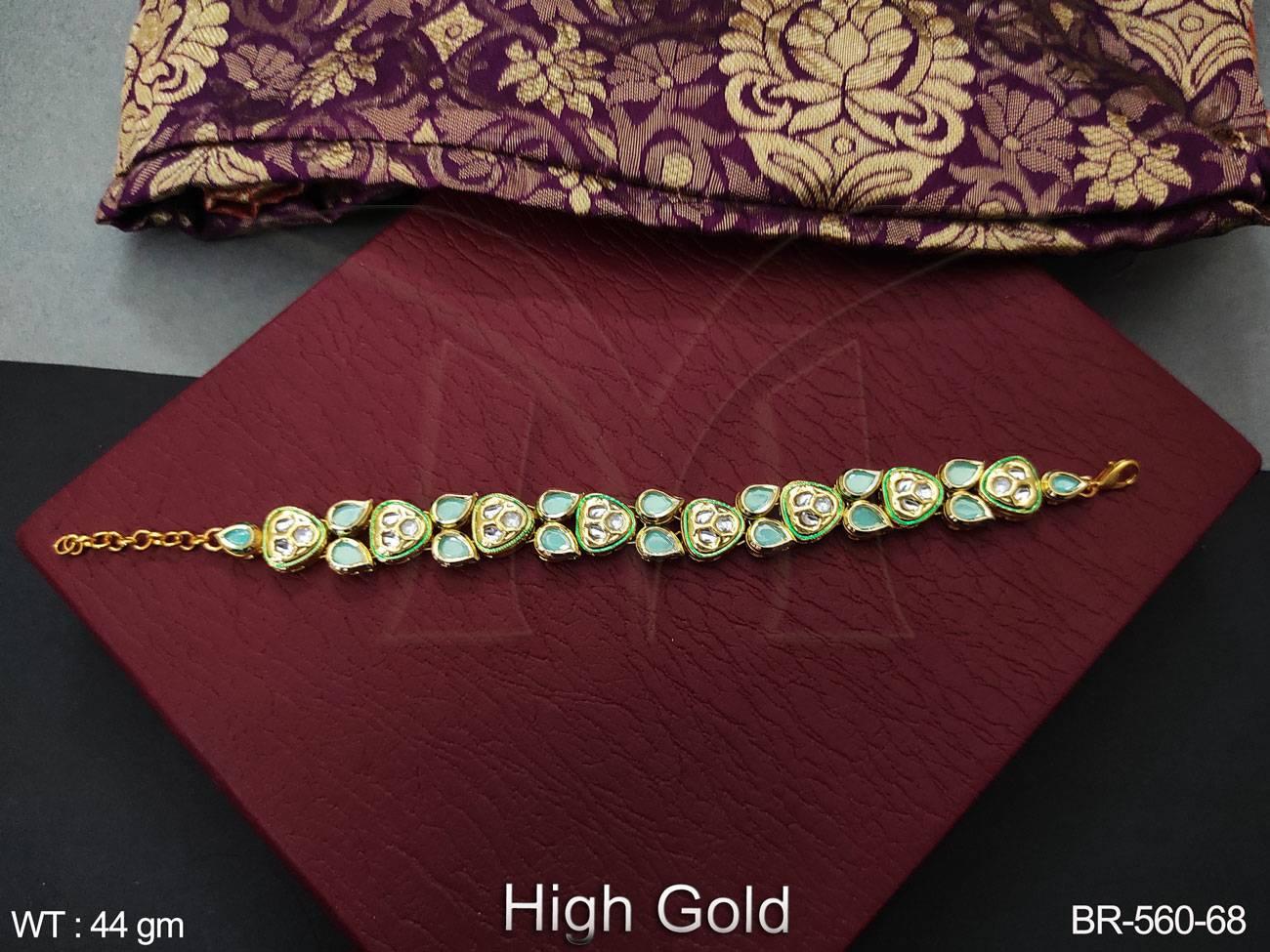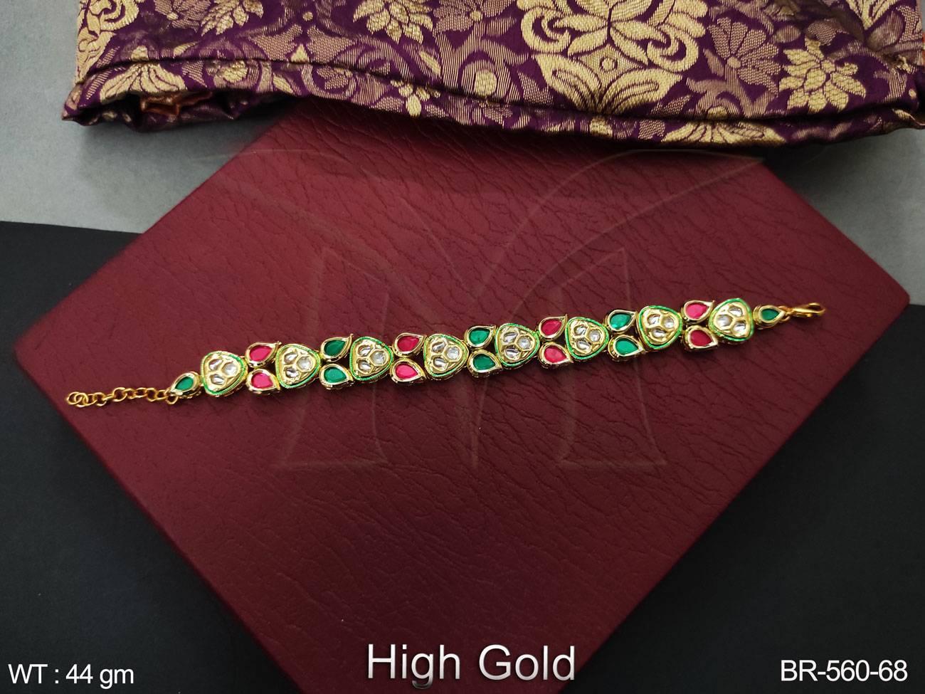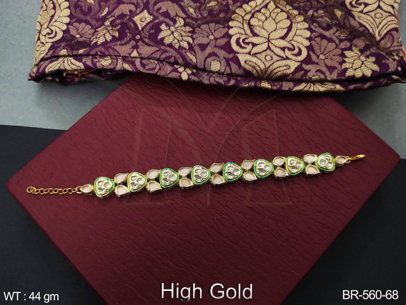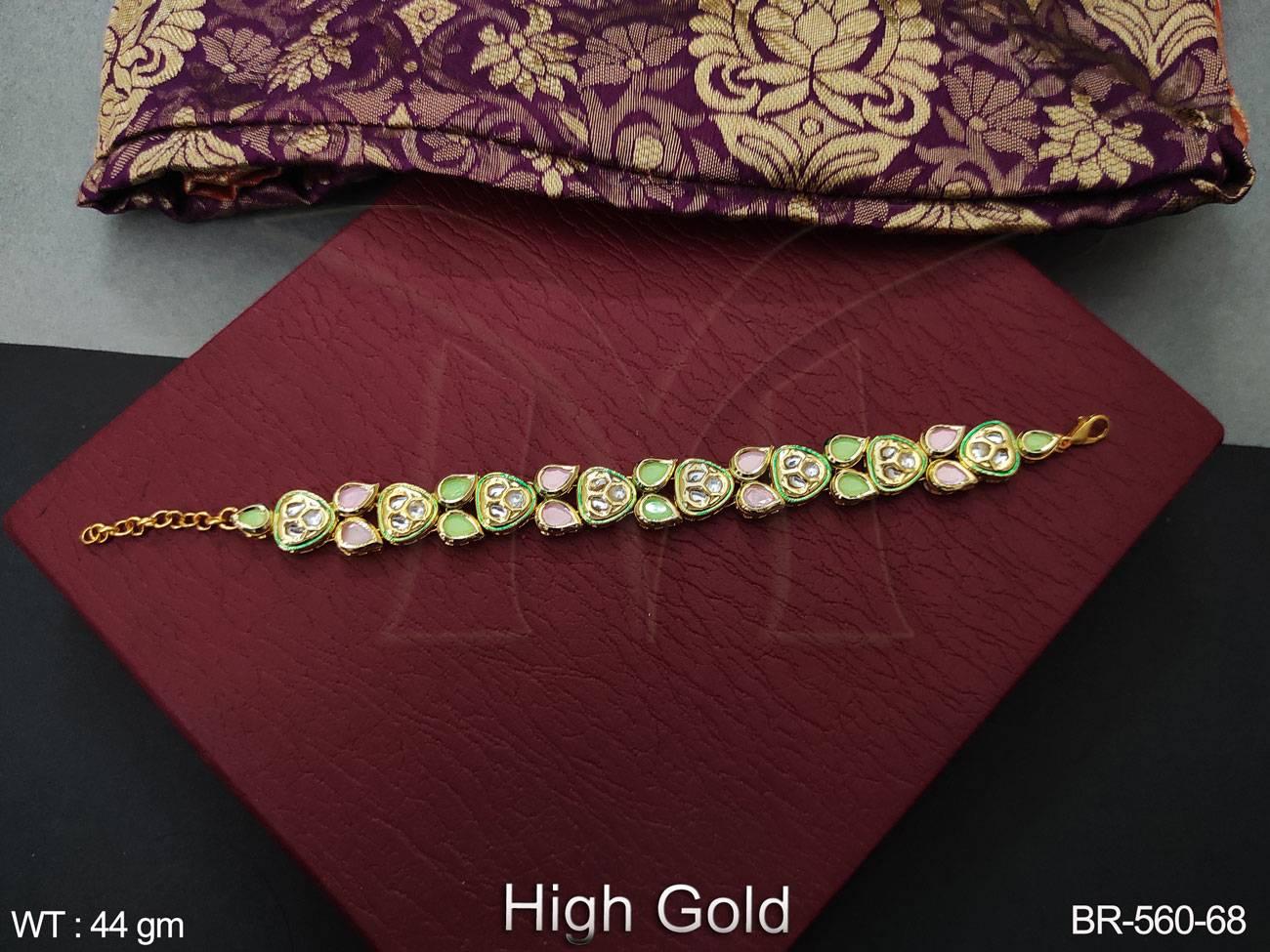 - Kundan Jewllery Fancy Style Party wear Beautiful High Gold Polish Bracelet