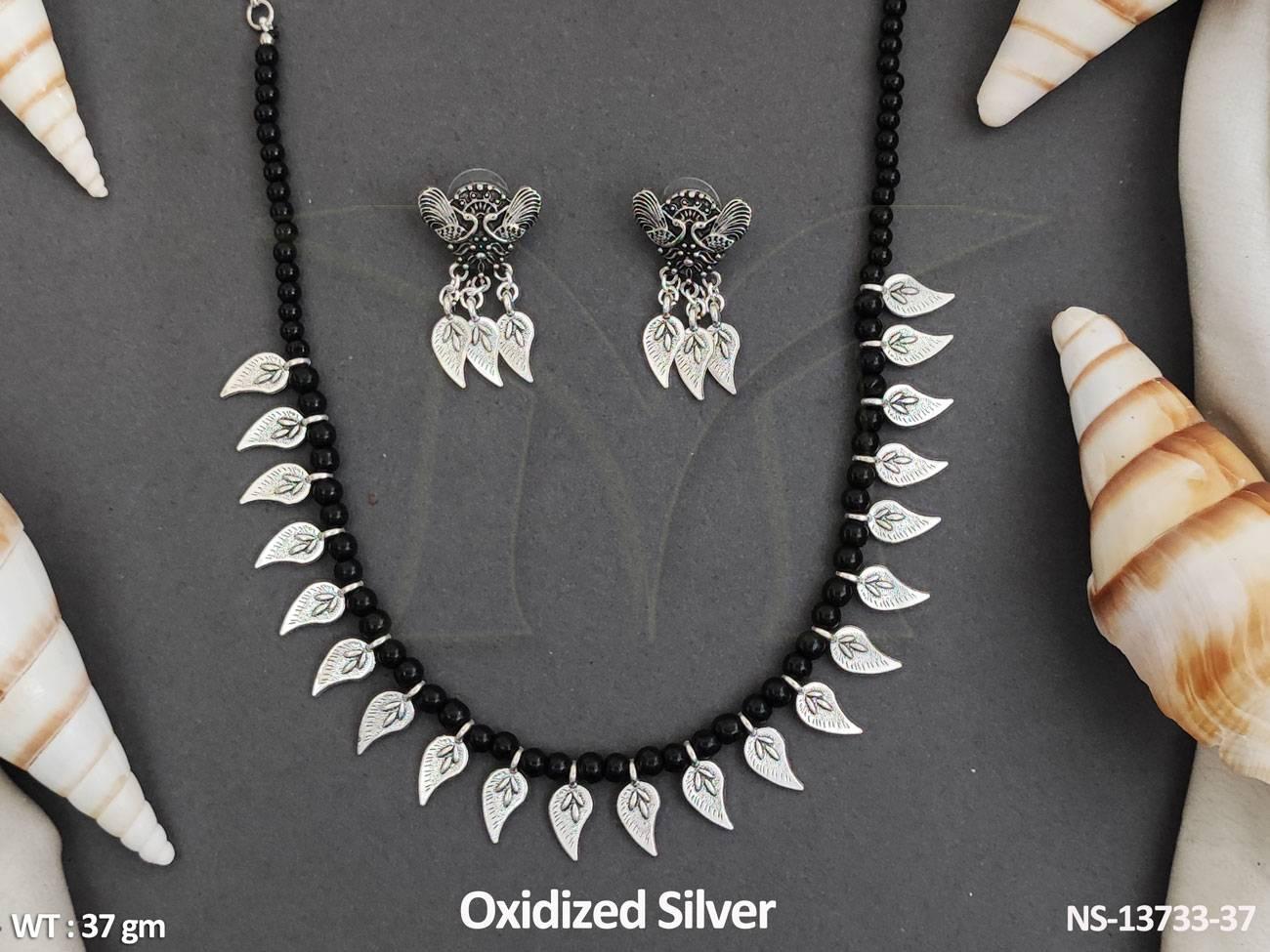 - Leaf Design Antique Style Oxidised Silver Polish Party wear Oxidised Silver Short
