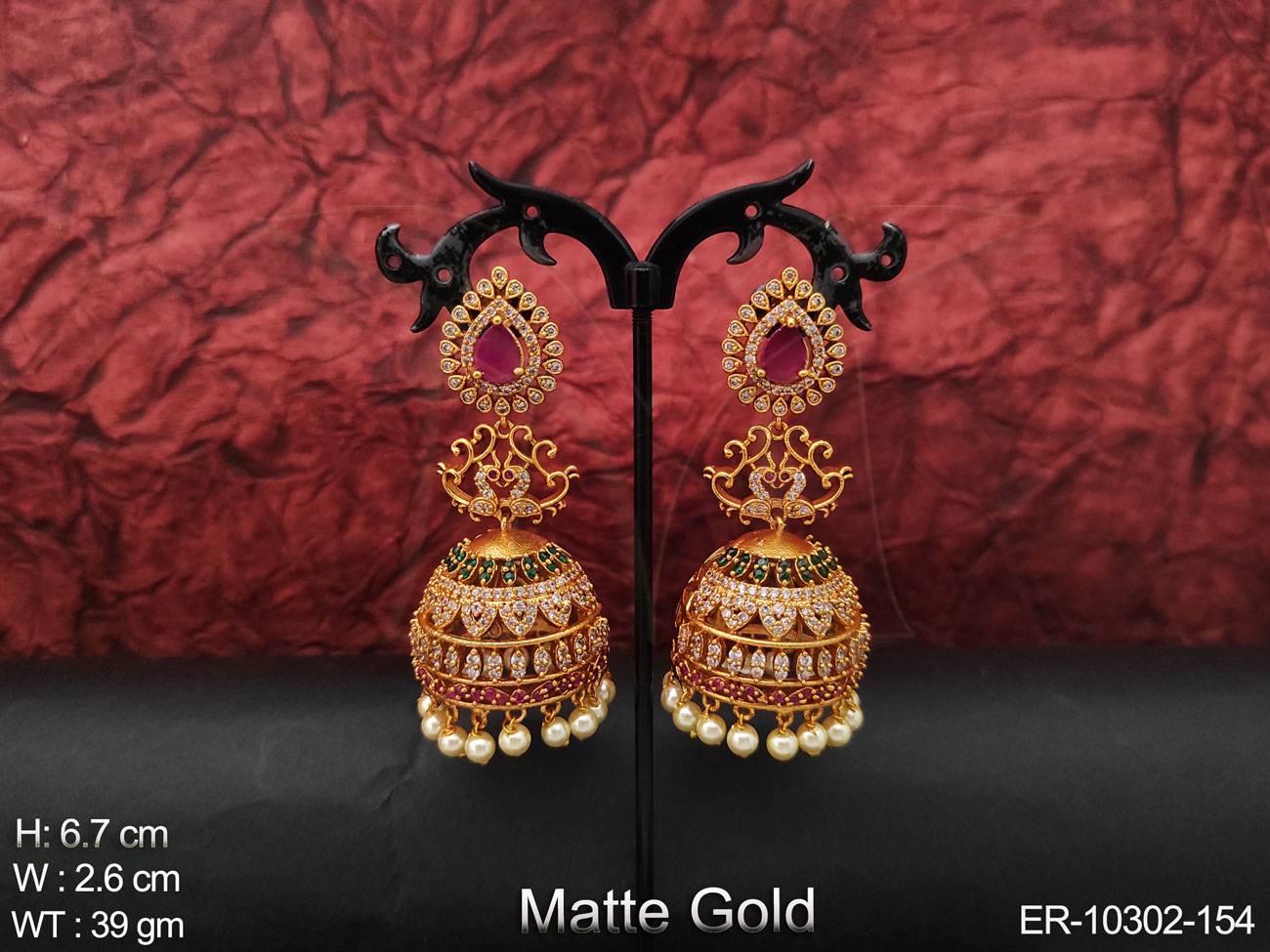 Matte Gold Polish Beautiful Wedding Wear Full Stone Fancy Design Kemp Jhumka Earring