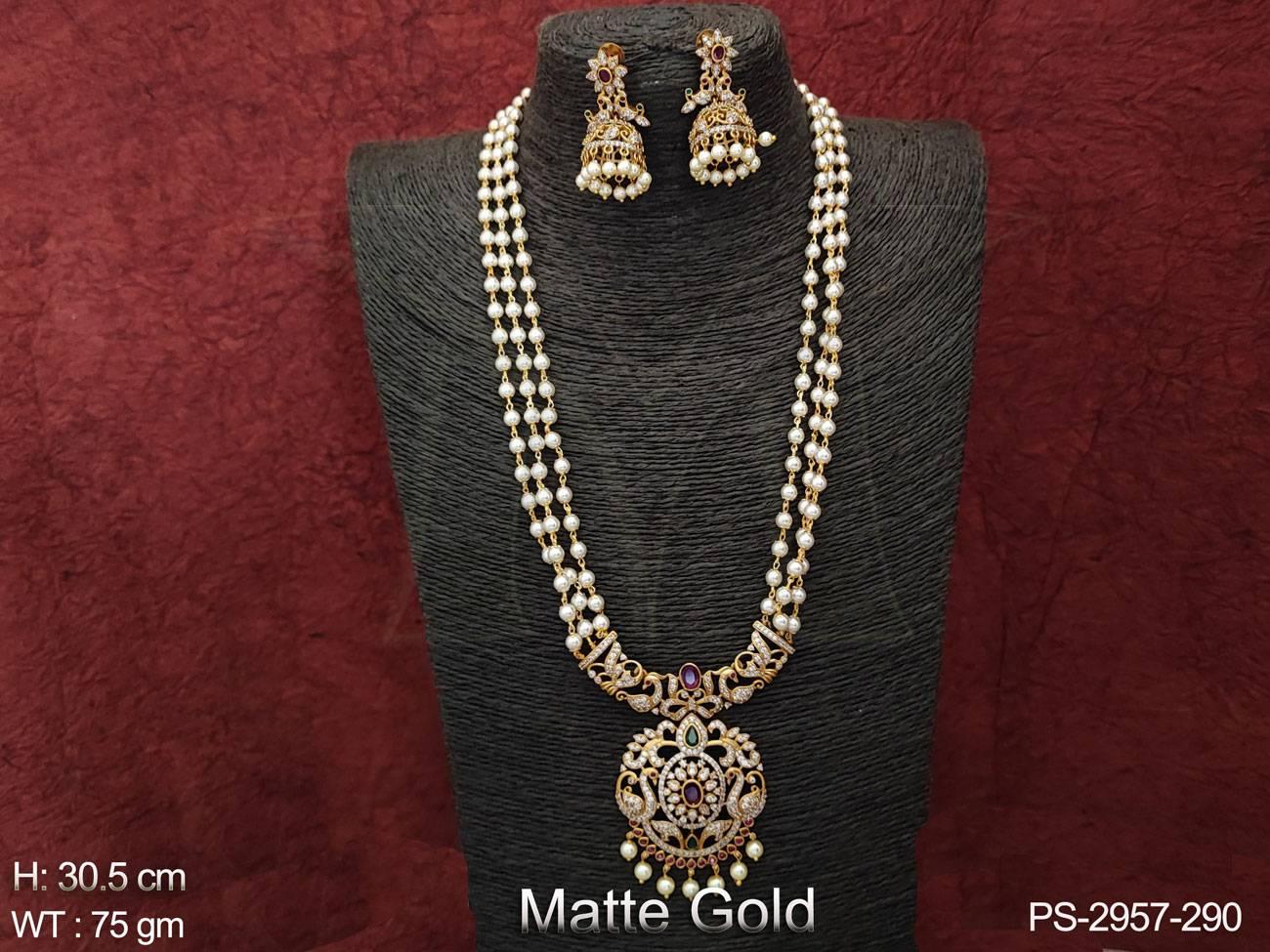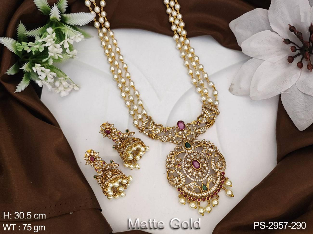 - Matte Gold Polish Fancy Style Kemp Design Party wear Kemp Jewelery Long Pendant Set