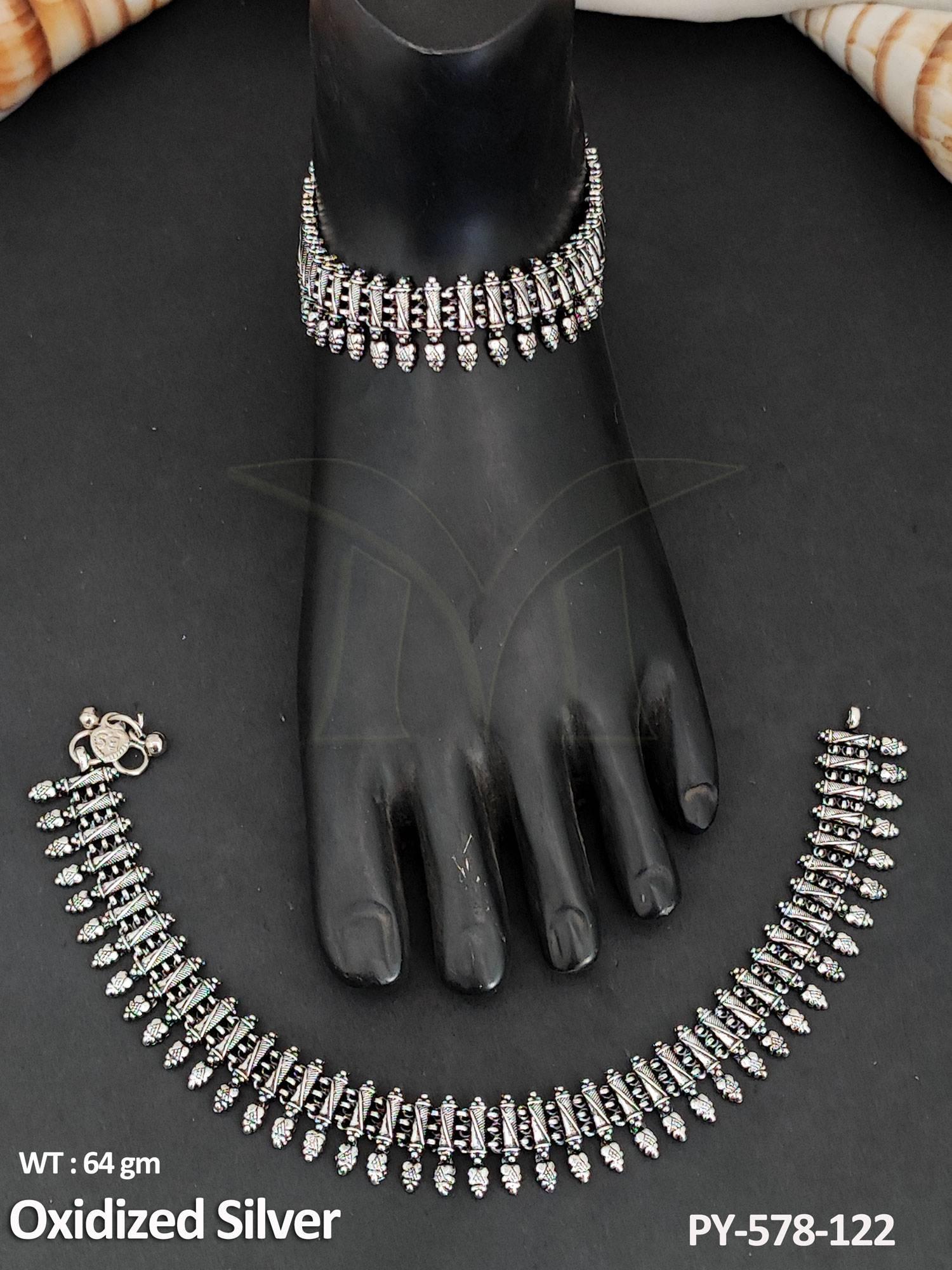 - Oxidised Jewellery Fancy Design Oxidised Silver Polish Payal Set