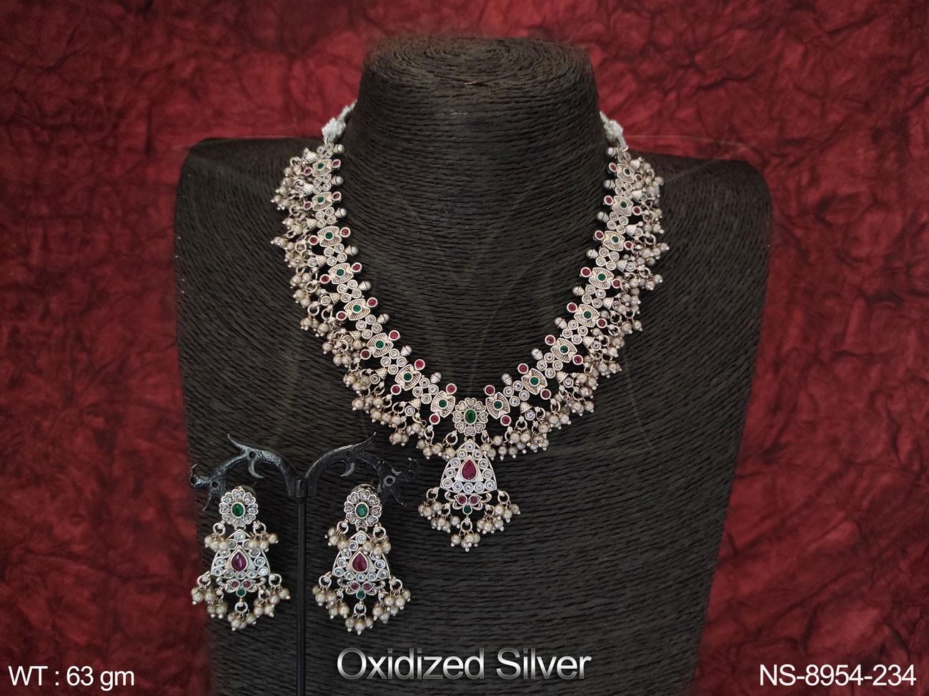 - Oxidised Silver Polish Beautiful Design Party wear Necklace Set