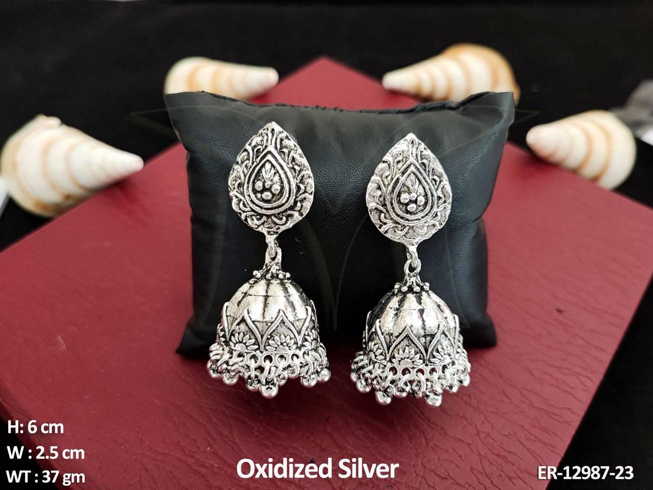 - Oxidised Silver Polish Beautiful Party wear Antique Design Oxidised Jhumka Earring
