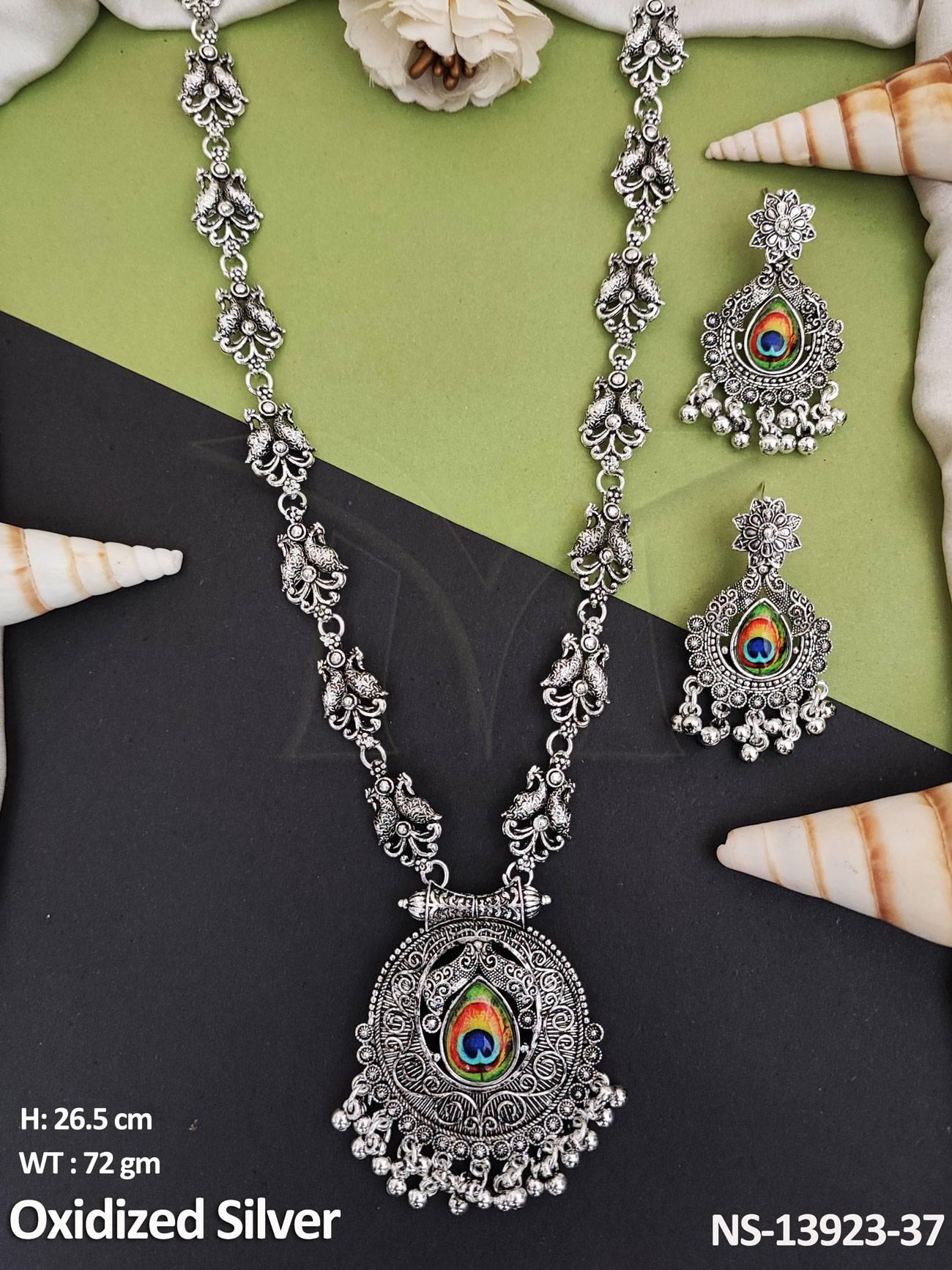 - Oxidised Silver Polish Fancy Design Beautiful Party wear Long Oxidised Jewellery Oxidised Necklace set