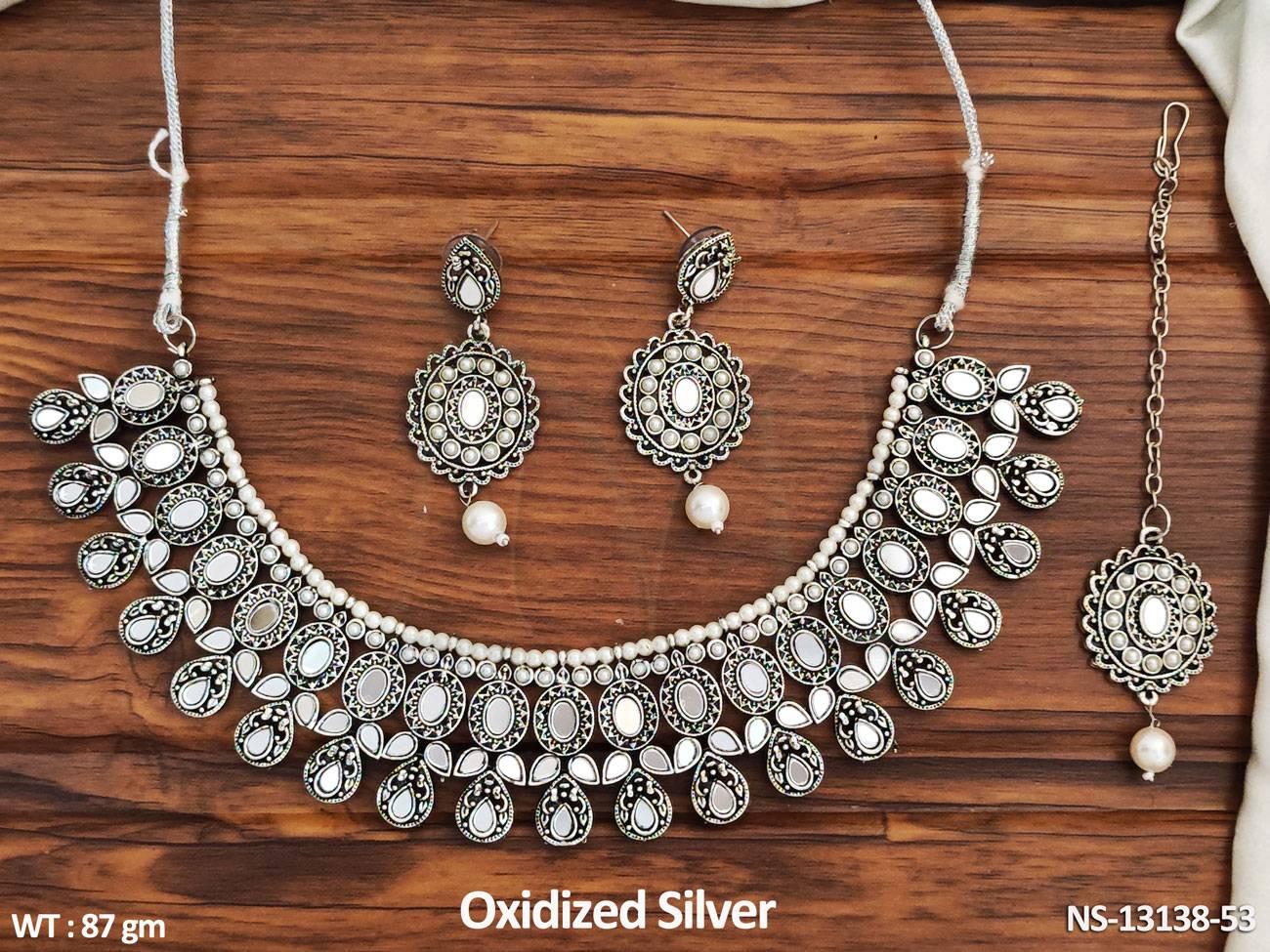 - Oxidised Silver Polish Fancy Design Party wear Beautiful Oxidised Silver Designer Choker Style Necklace Set