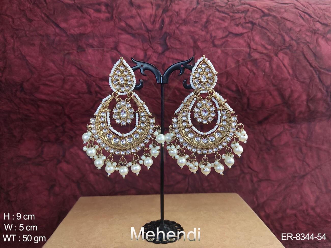 - Polki Full Stone Desgner Mehendi Polish Chand Bali Earring