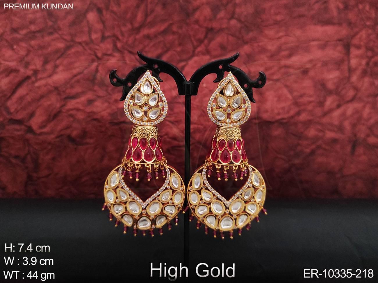- Round Shape High Gold Polish Party Wear Fancy Design Kundan Earring