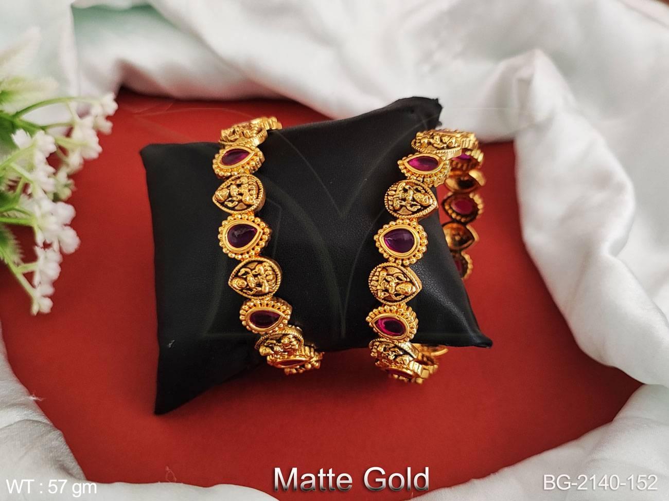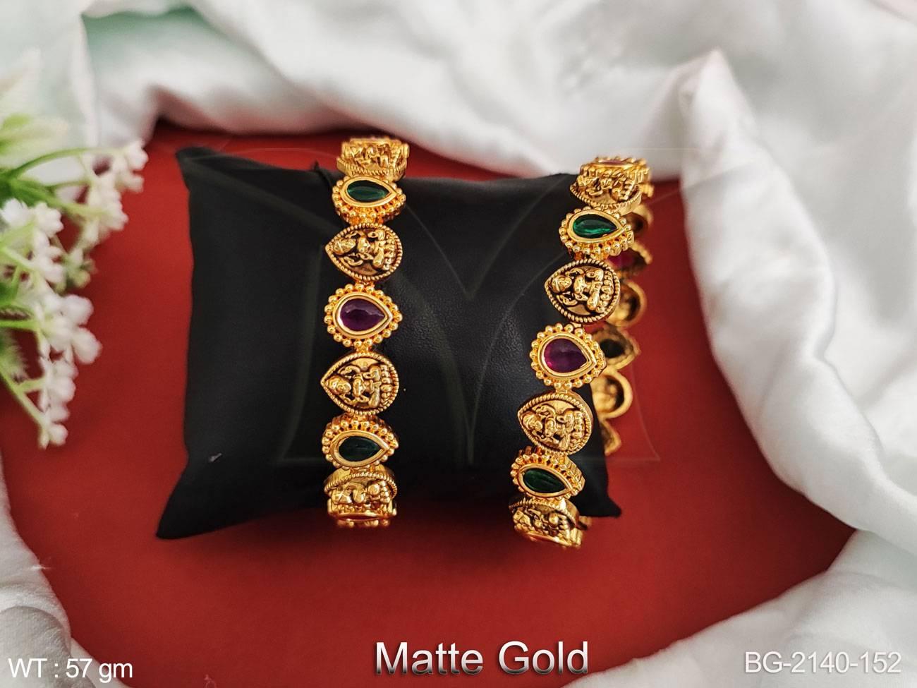 - Temple Jewellery Beautiful Fancy Style Matte Gold Polish 2 Bangles Set
