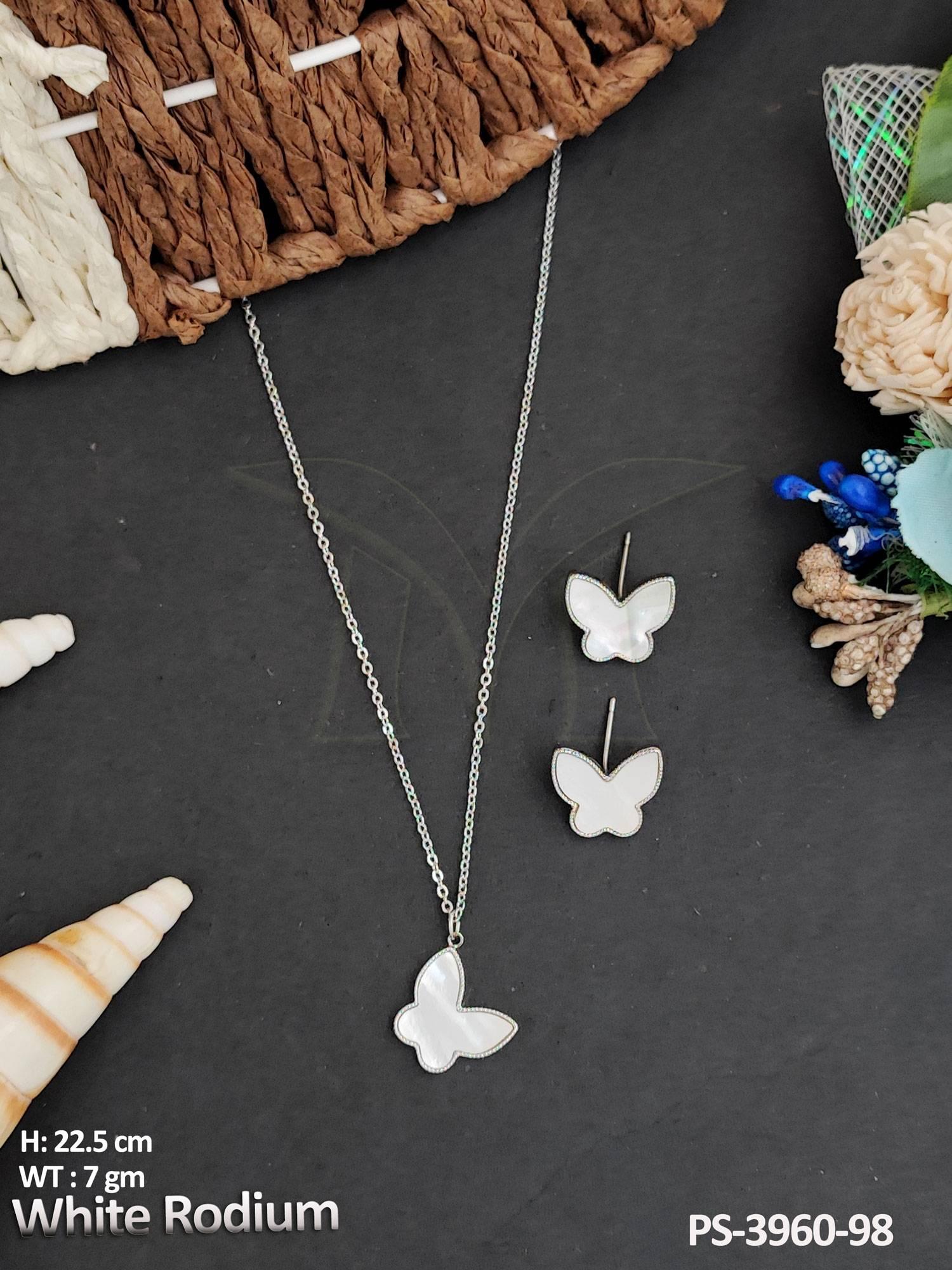 White Rodium Polish Butter Fly Design fancy Cz Ad Pendant Set