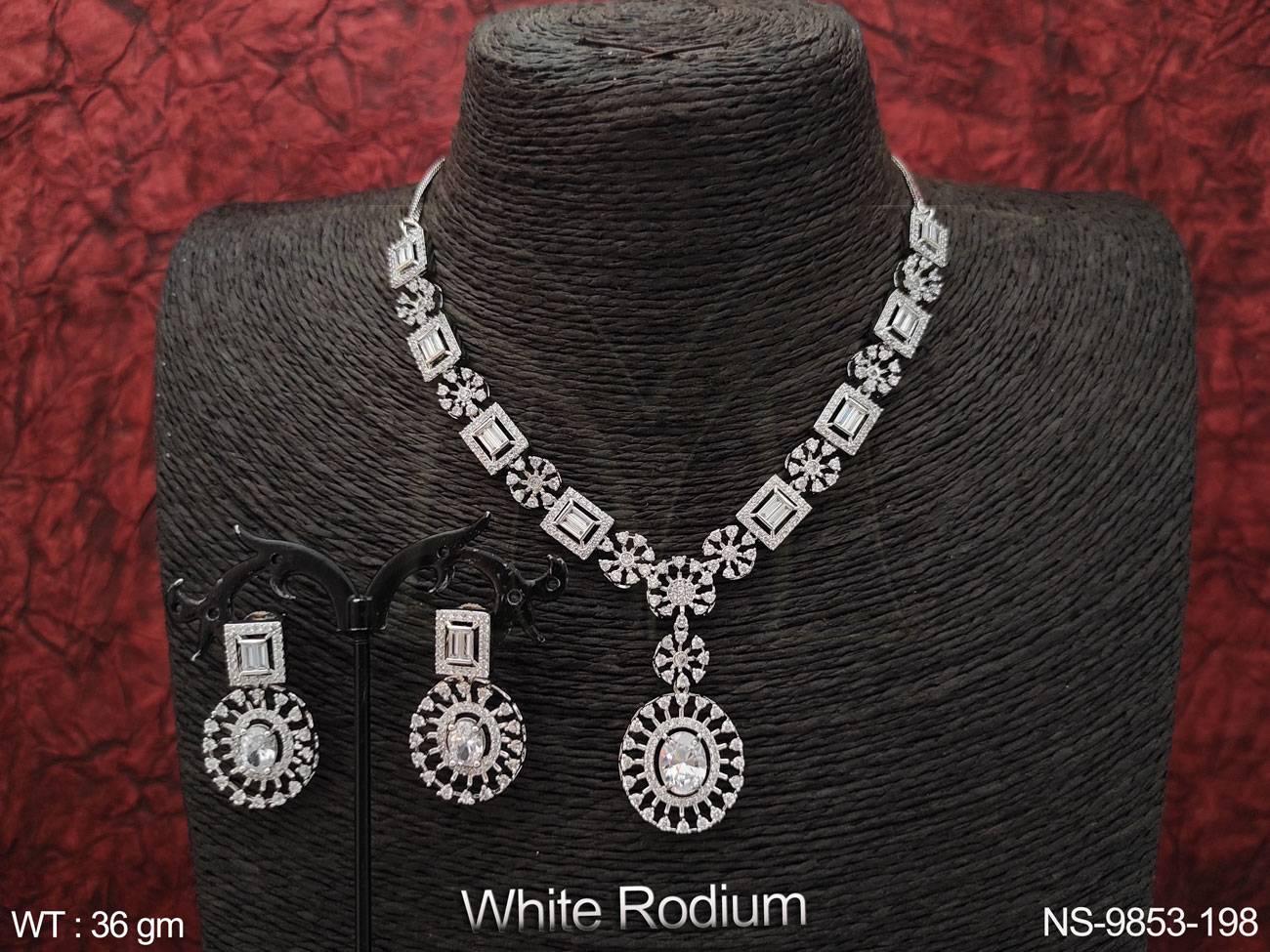 White Rodium Polish Cz Ad Full Stones Party wear Necklace Set