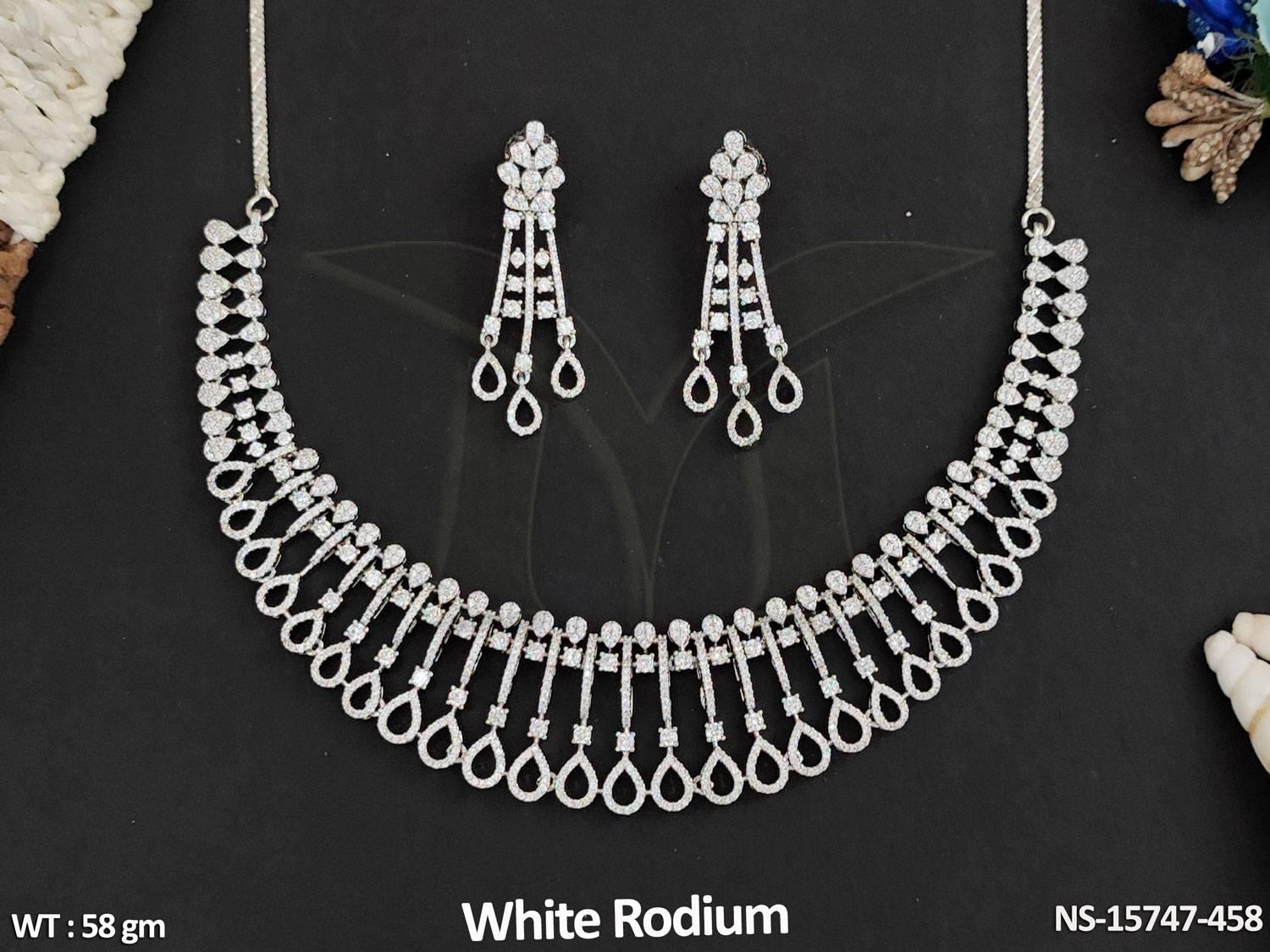 - White Rodium Polish Fancy Design Full Ad Stone Necklace Set